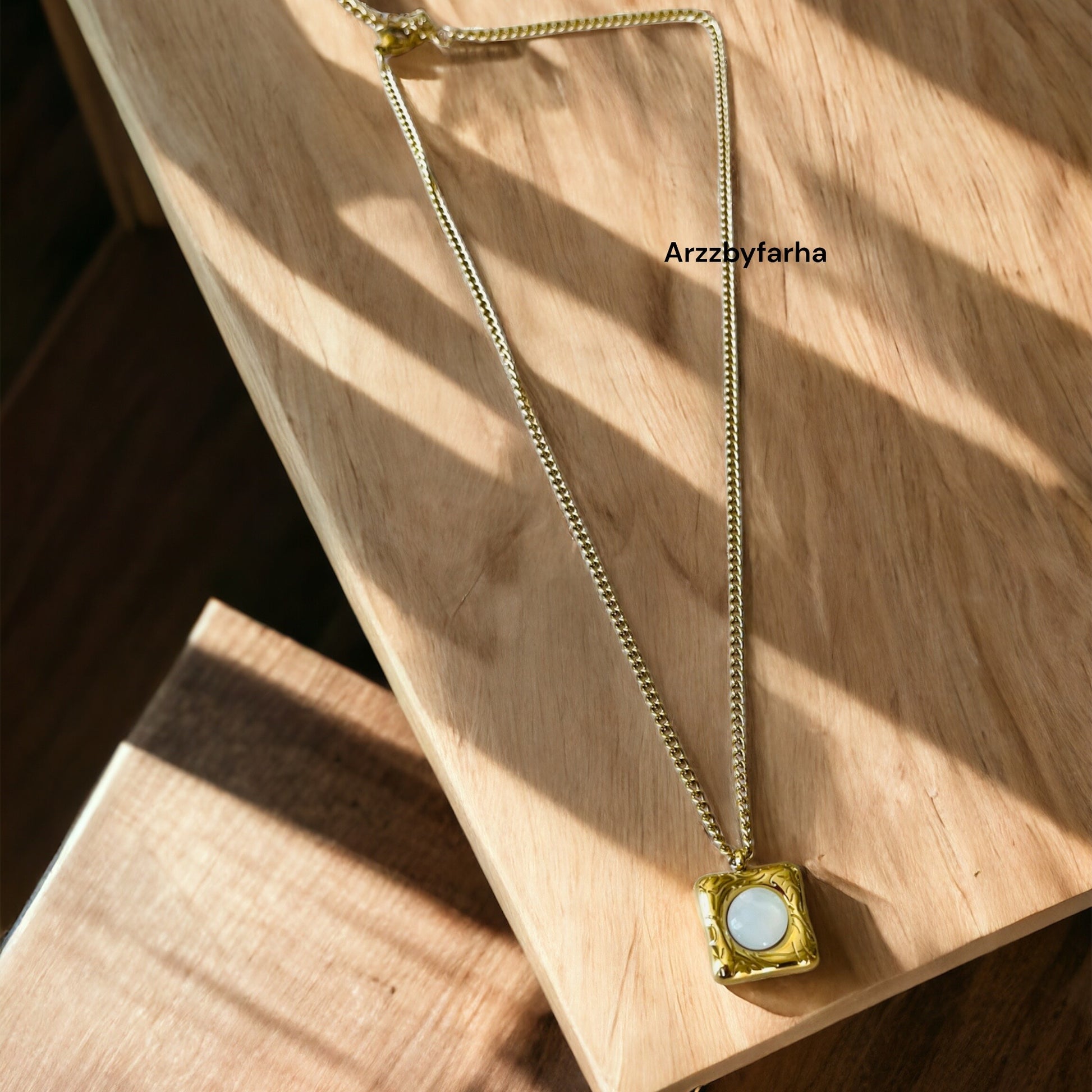 This elegant Square Pendant Gold Necklace is the perfect accessory for any outfit. With its versatile style, this necklace will become a timeless statement piece in your jewelry collection.