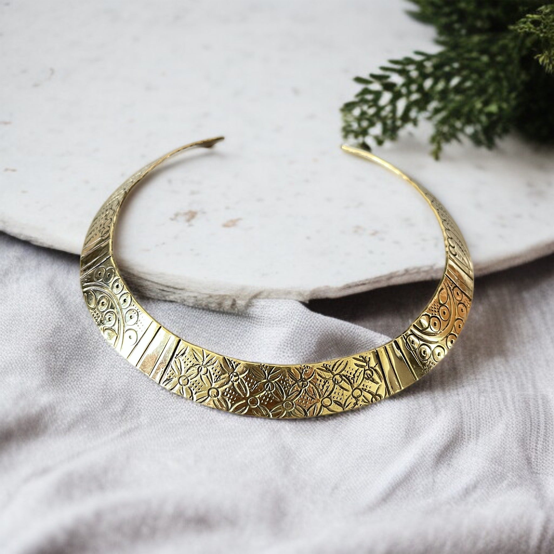 Carved Gold Choker Necklace