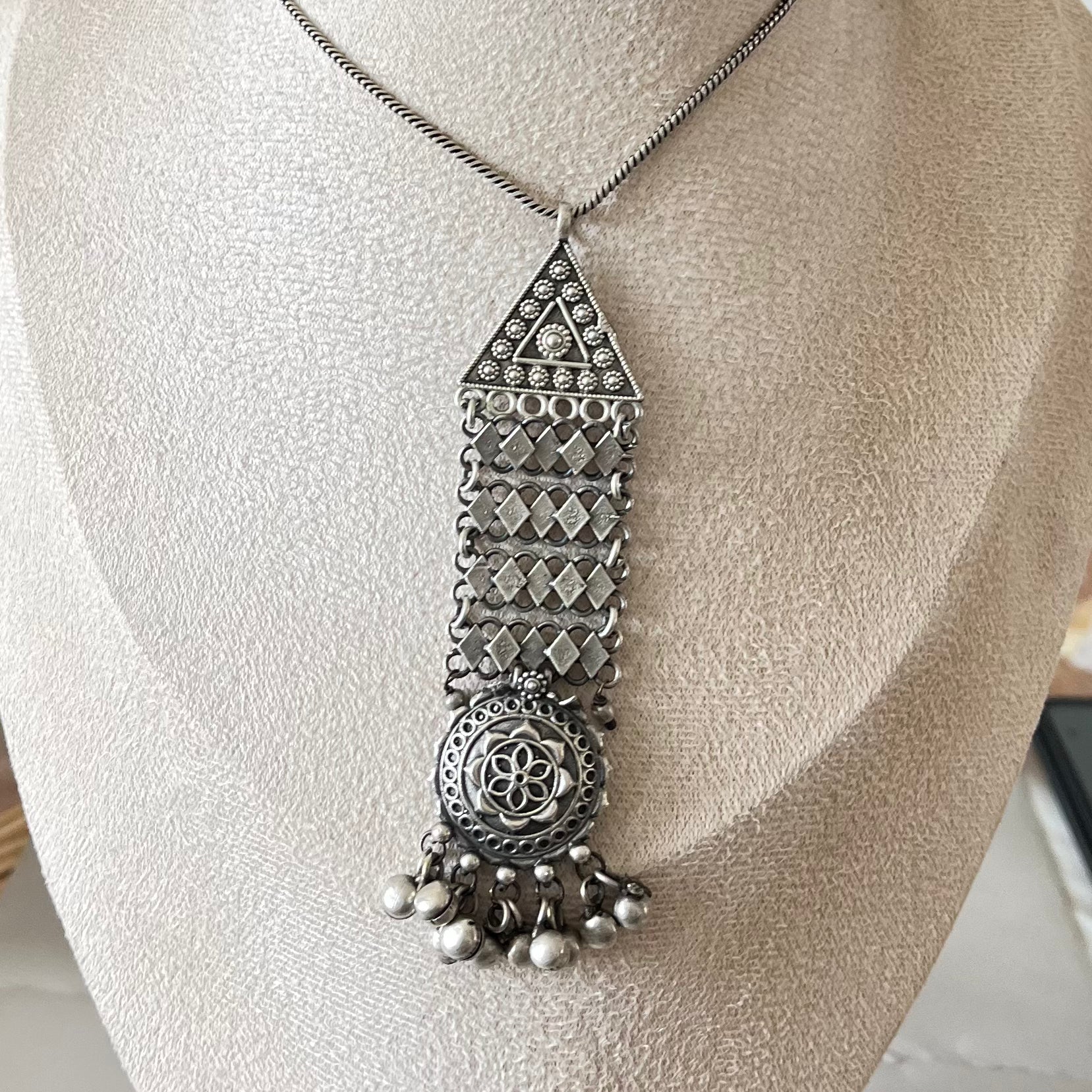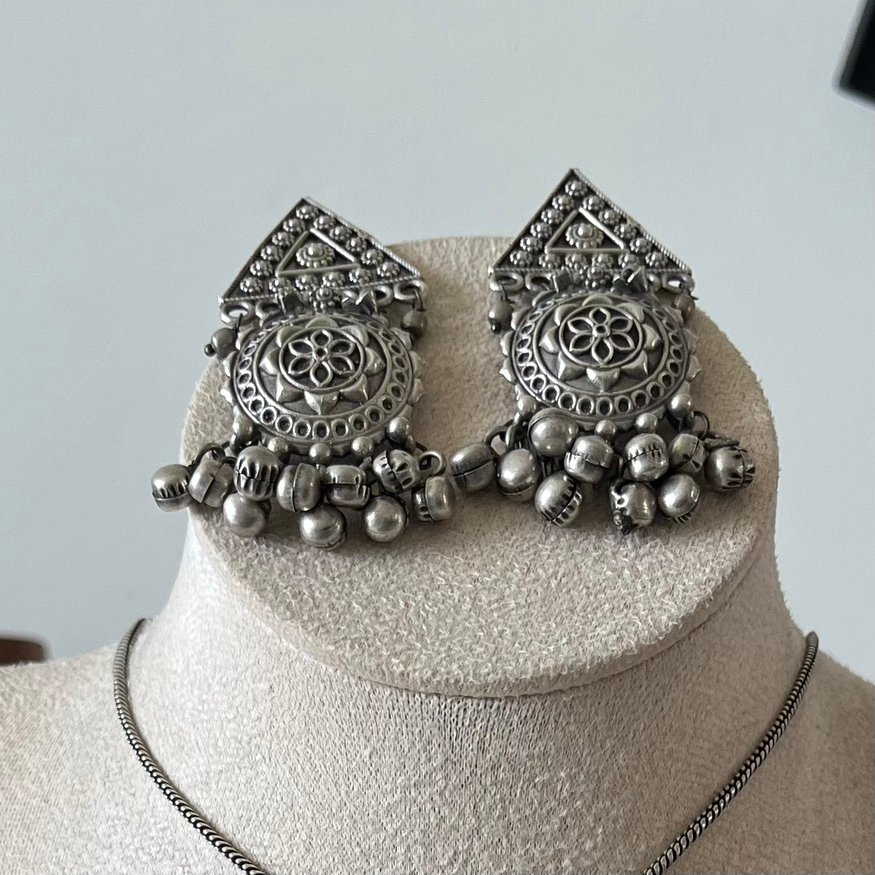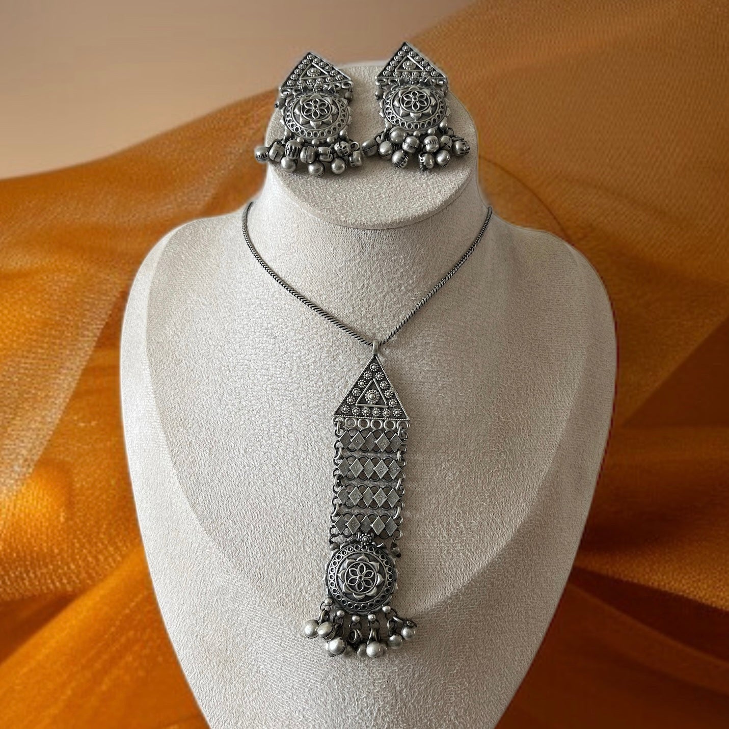 Silver Oxidised Drop Necklace Set