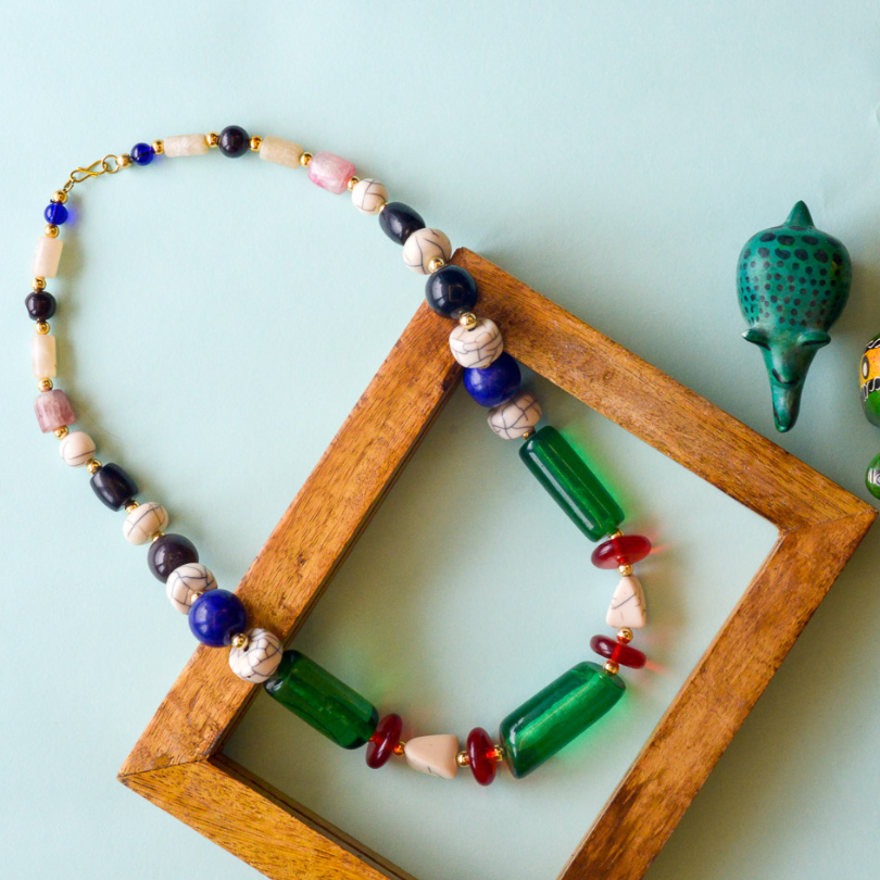 Color : Green with Blue and White Beads