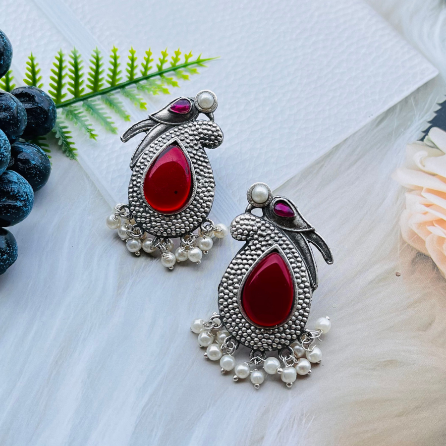 These bird-shaped, oxidised silver-plated earrings feature a stone-encrusted Monalisa design. The intricate detailing of the earrings provides an exquisite look while also providing a lightweight feel for comfortable all-day wear.