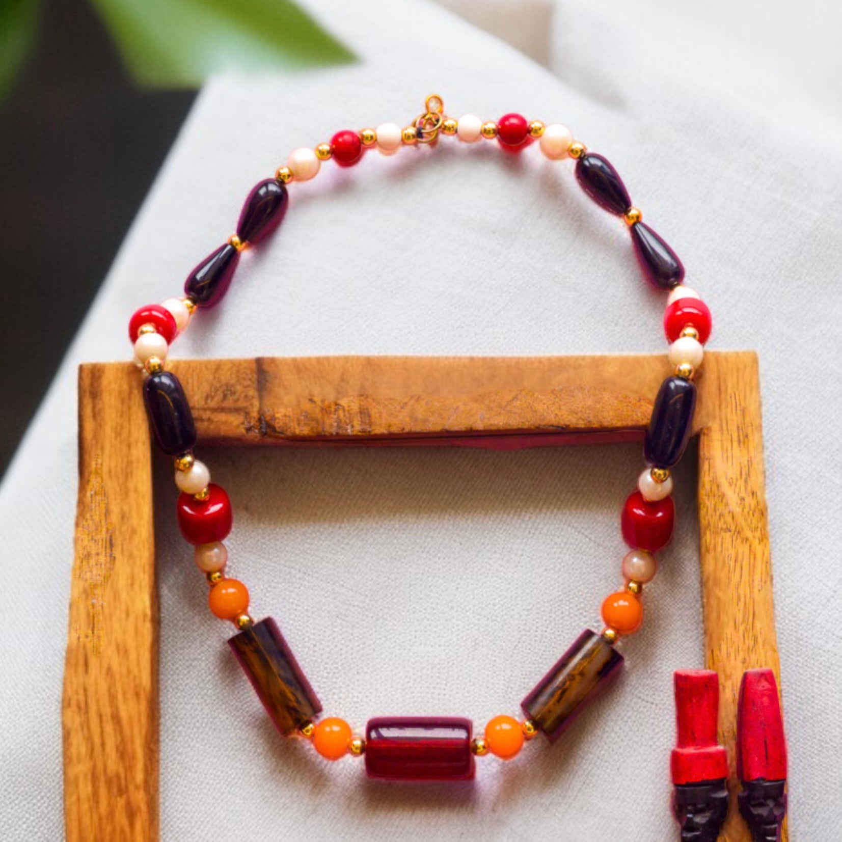 Color : Brown with Orange & Red Bead