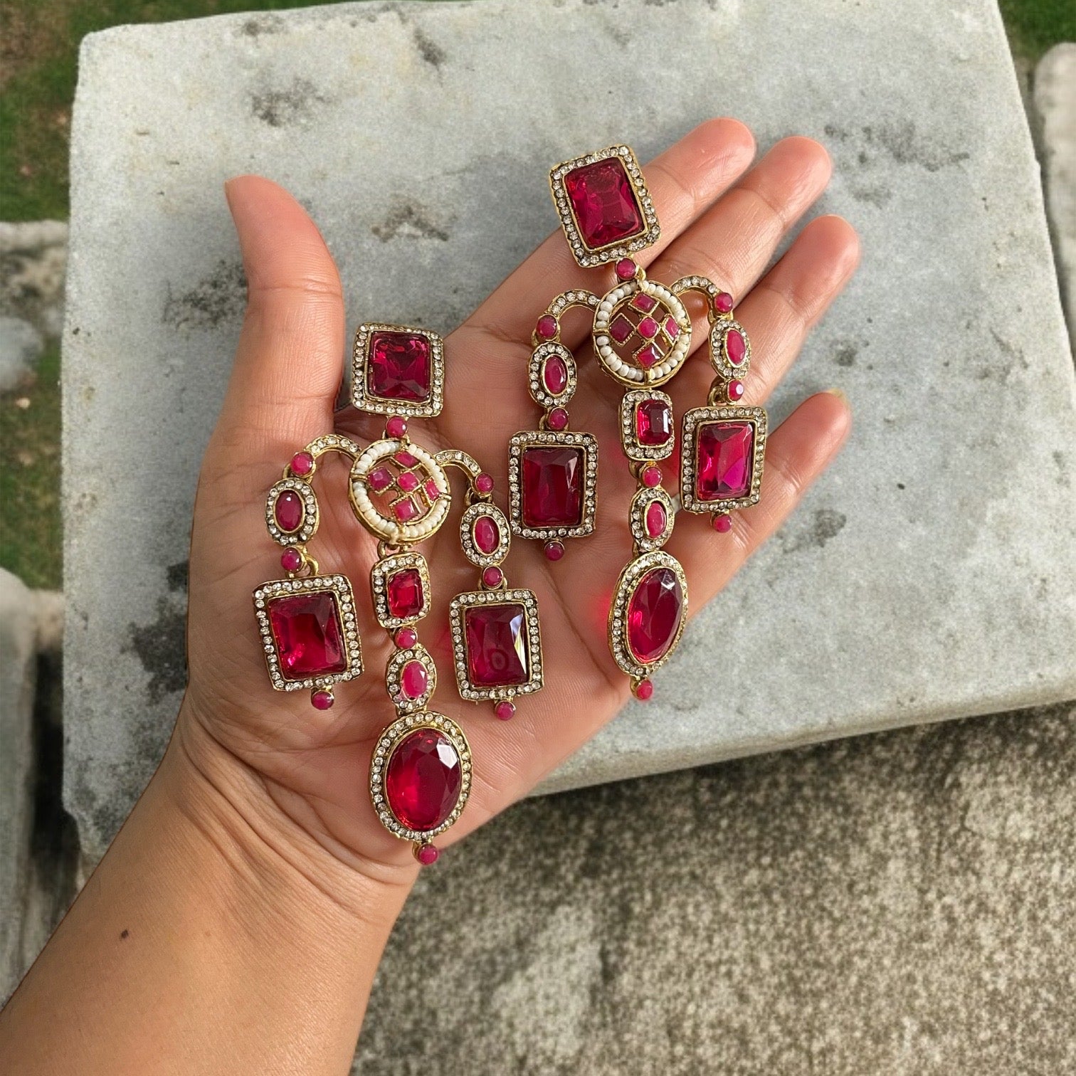 Elevate your style with our Deepika Chandelier Earrings. these earrings feature elegant design and high-quality Stone materials. Make a sophisticated statement with these stunning earrings that are sure to elevate any outfit.Secured with a post and back