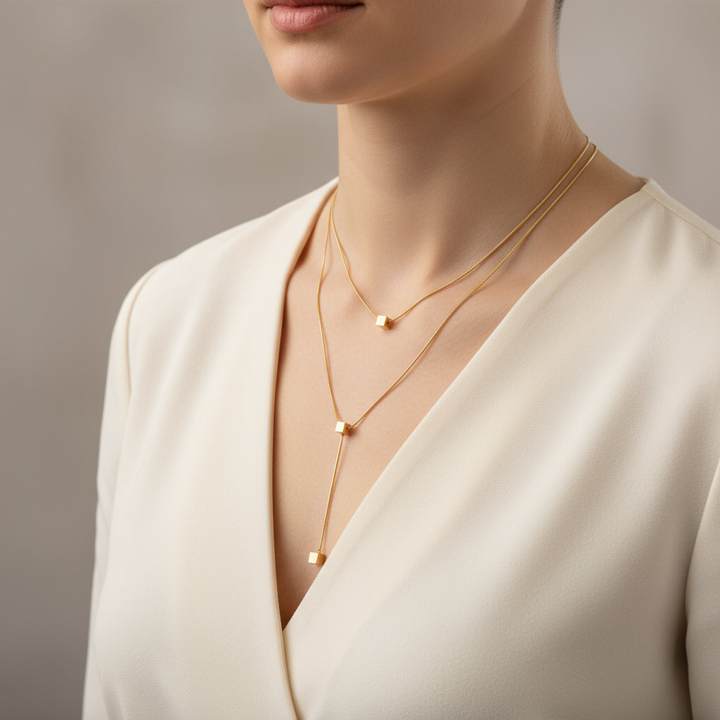 Solid Gold Drop Chain Necklace