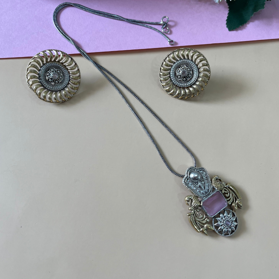 Dual Tone Silver Pendant Necklace Set