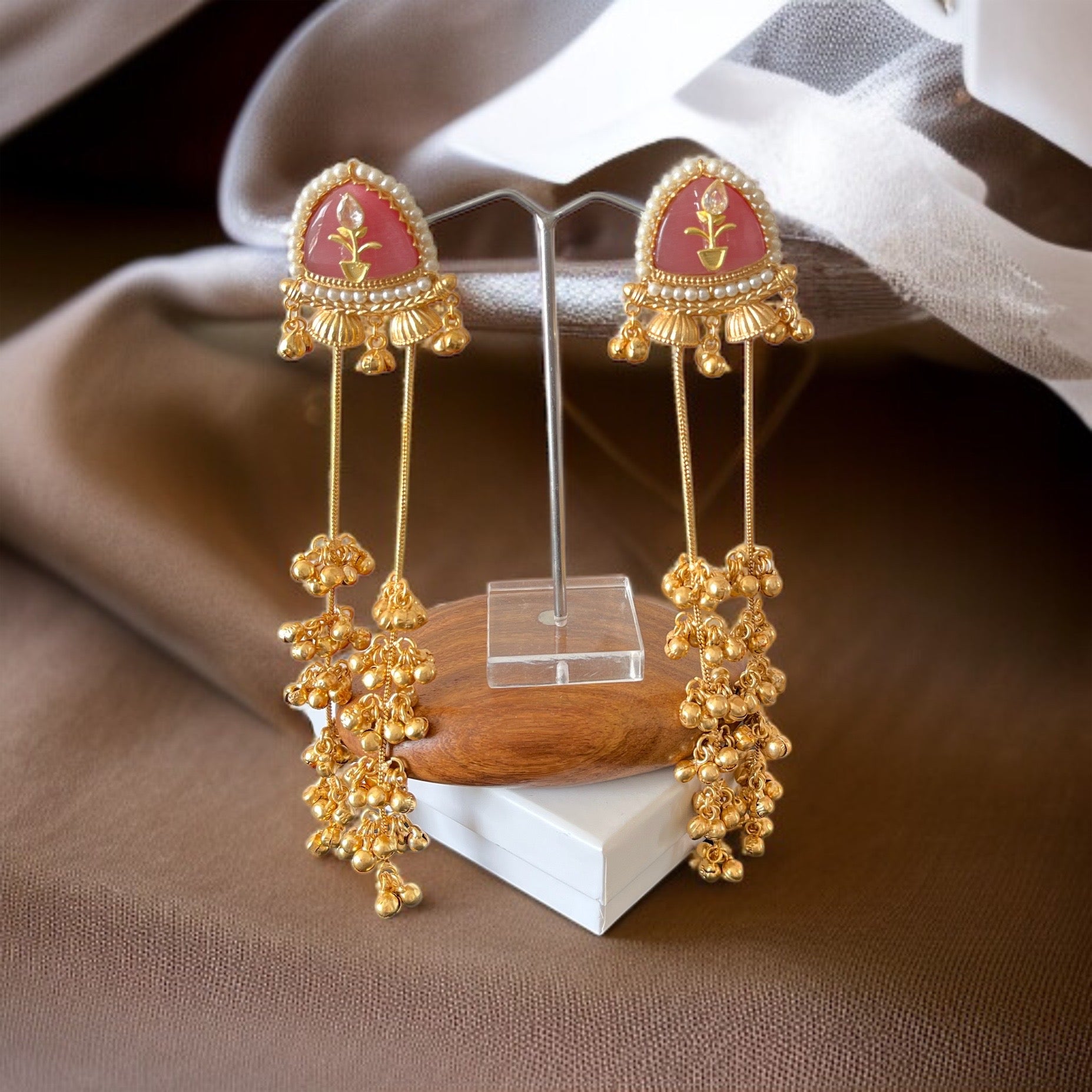 Pink Ghungroo Kashmiri Earrings