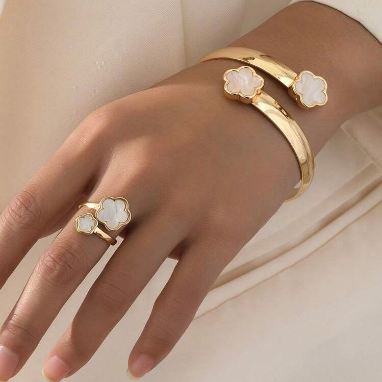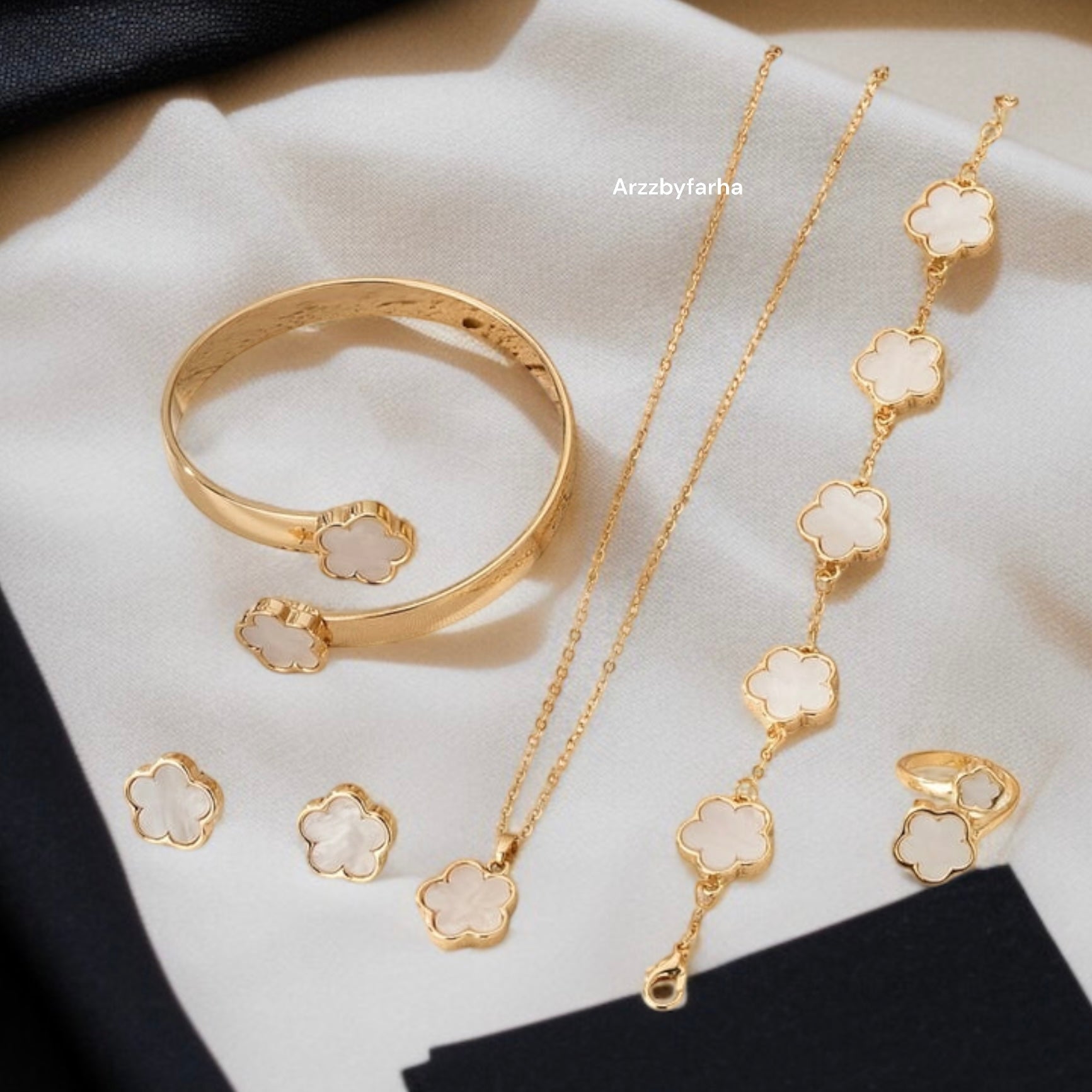 Contains : Cuff Bracelet, Chain Bracelet, Pendant Chain, Adjustable Ring and Studs.