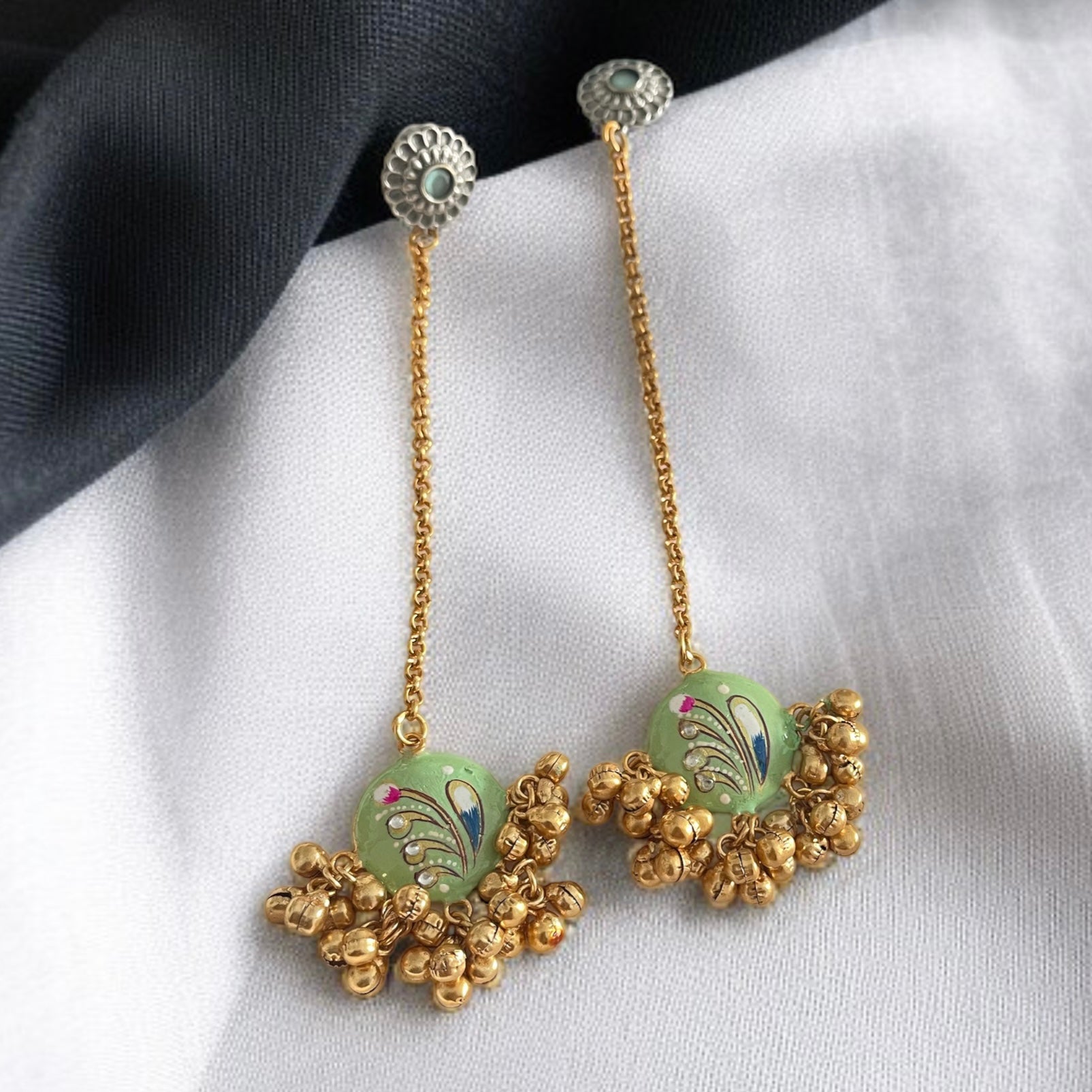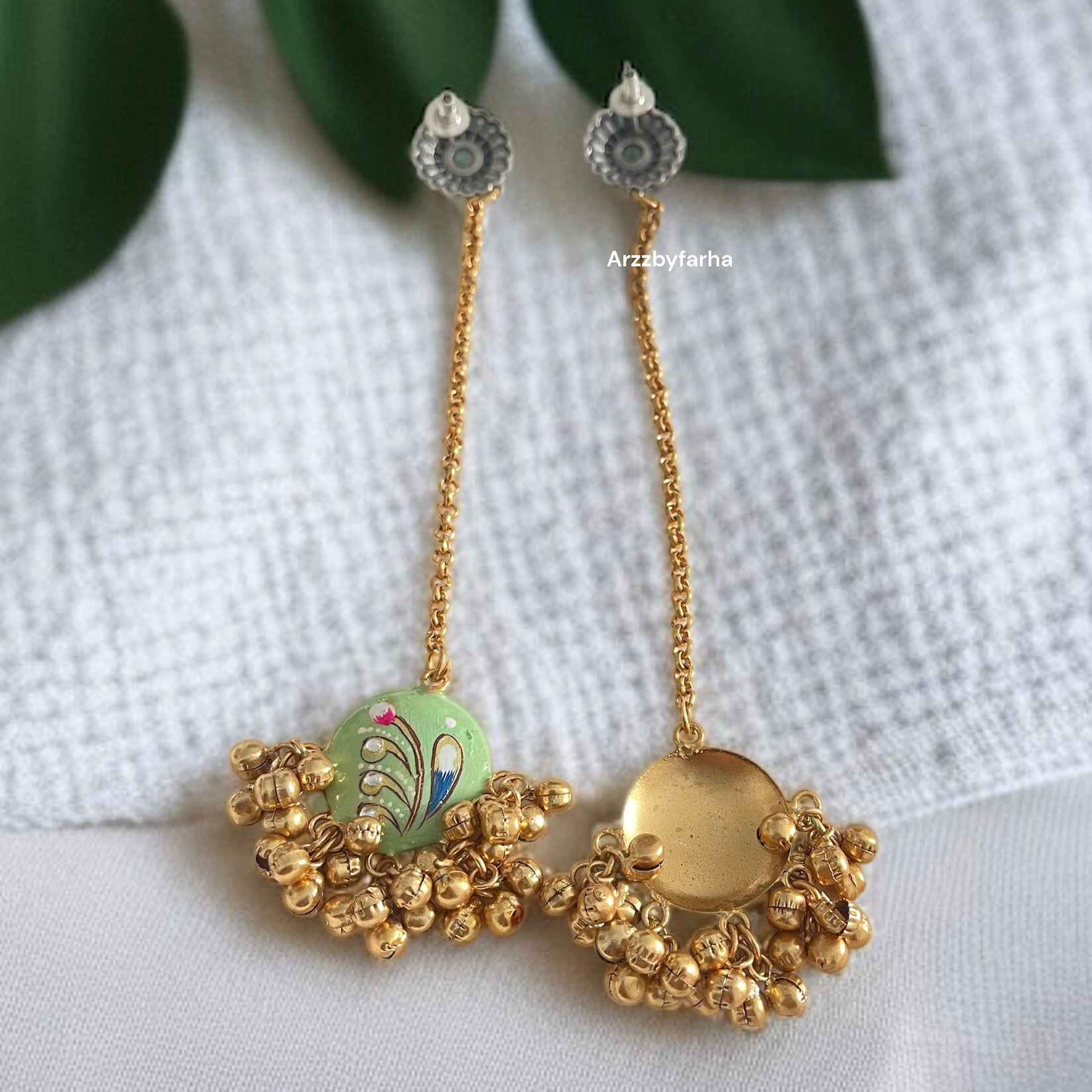 Hanging Chain Handprint Ghungroo Earrings