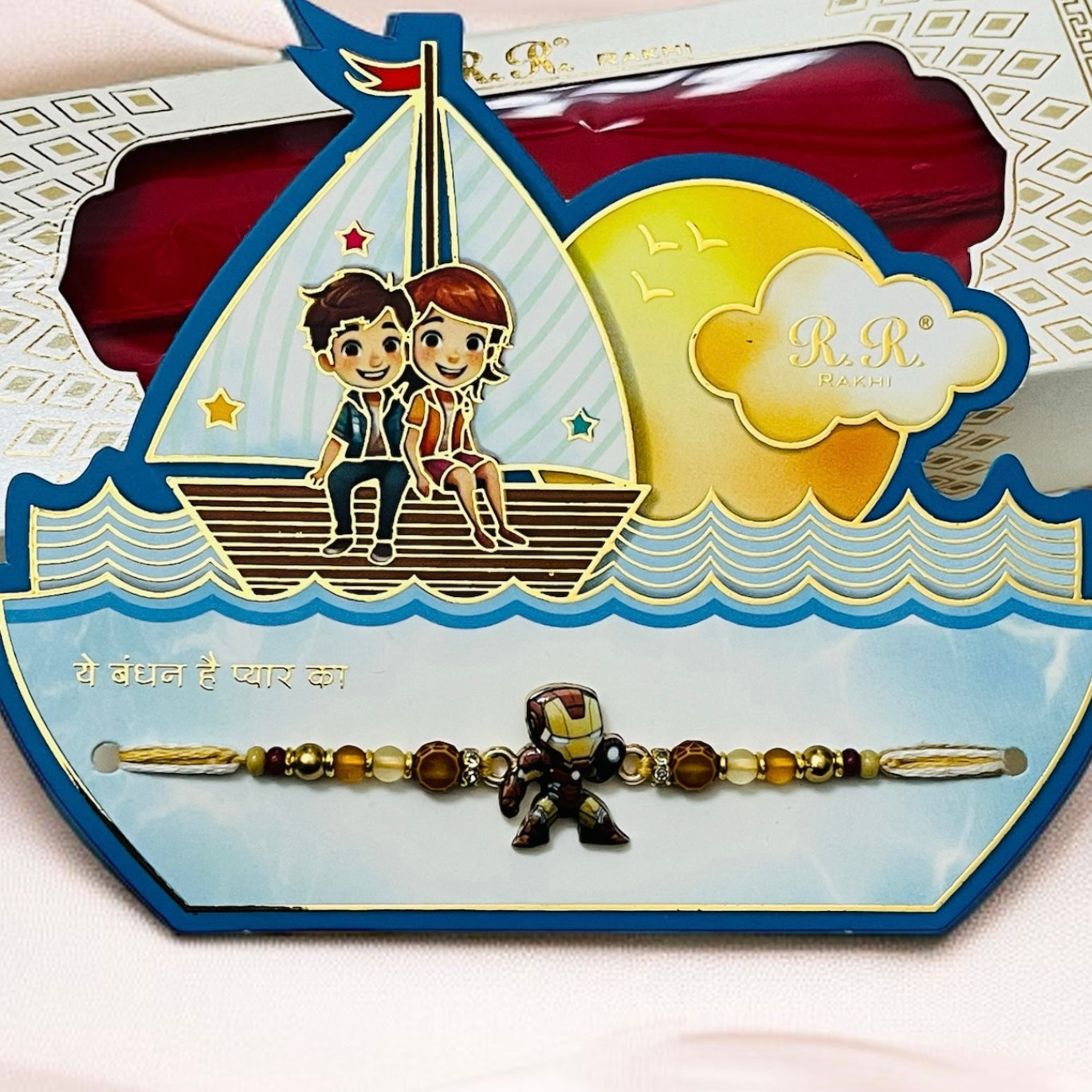Celebrate the special bond with your little superhero using the Iron Man Kids Rakhi. Crafted with vibrant colors and a detailed Iron Man motif, this rakhi adds a fun and heroic touch to the traditional festival.