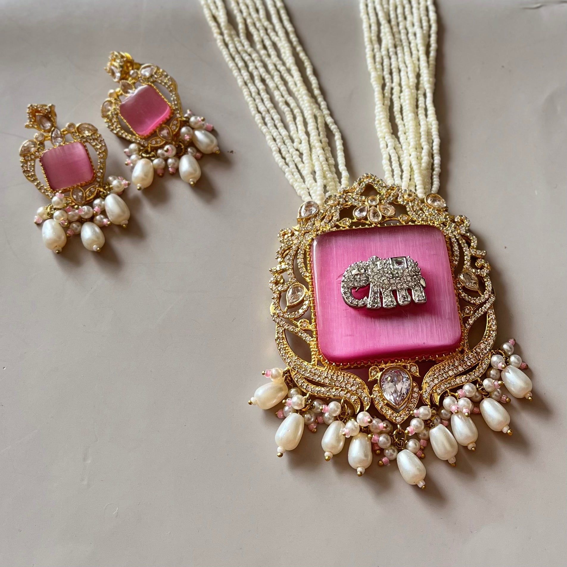 Pink Monalisa Stone Necklace Set