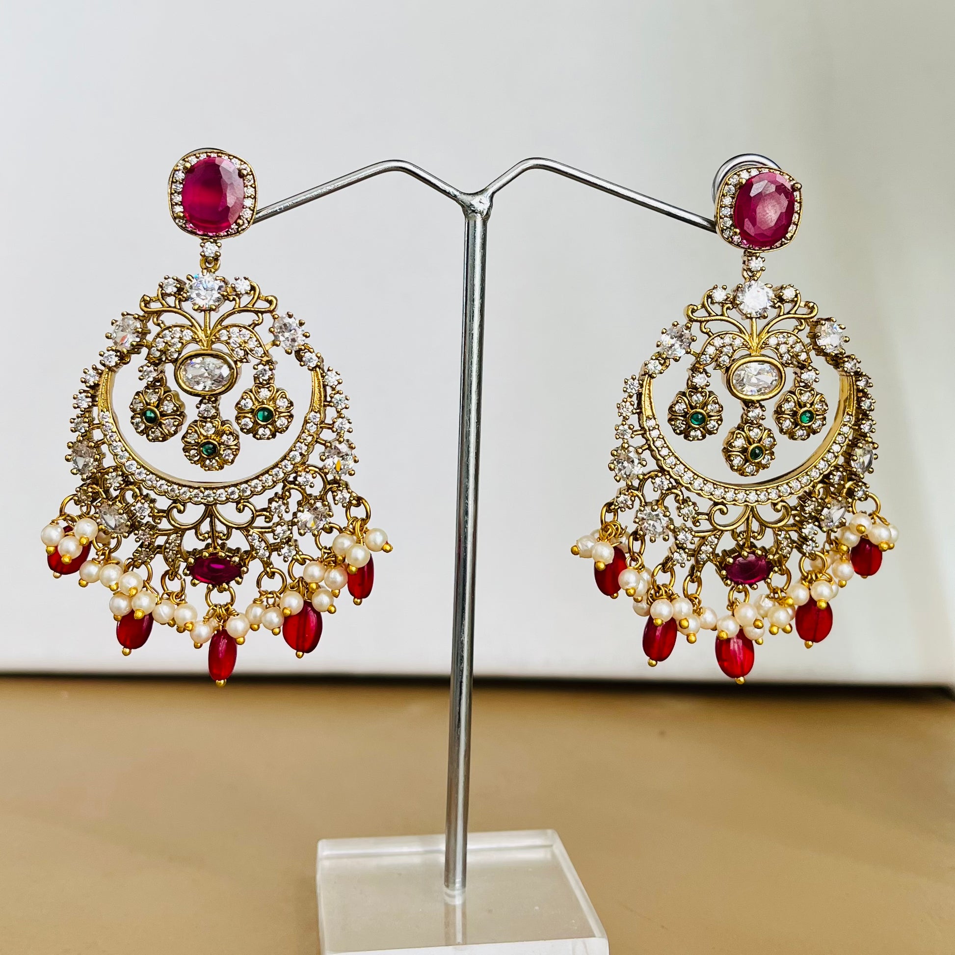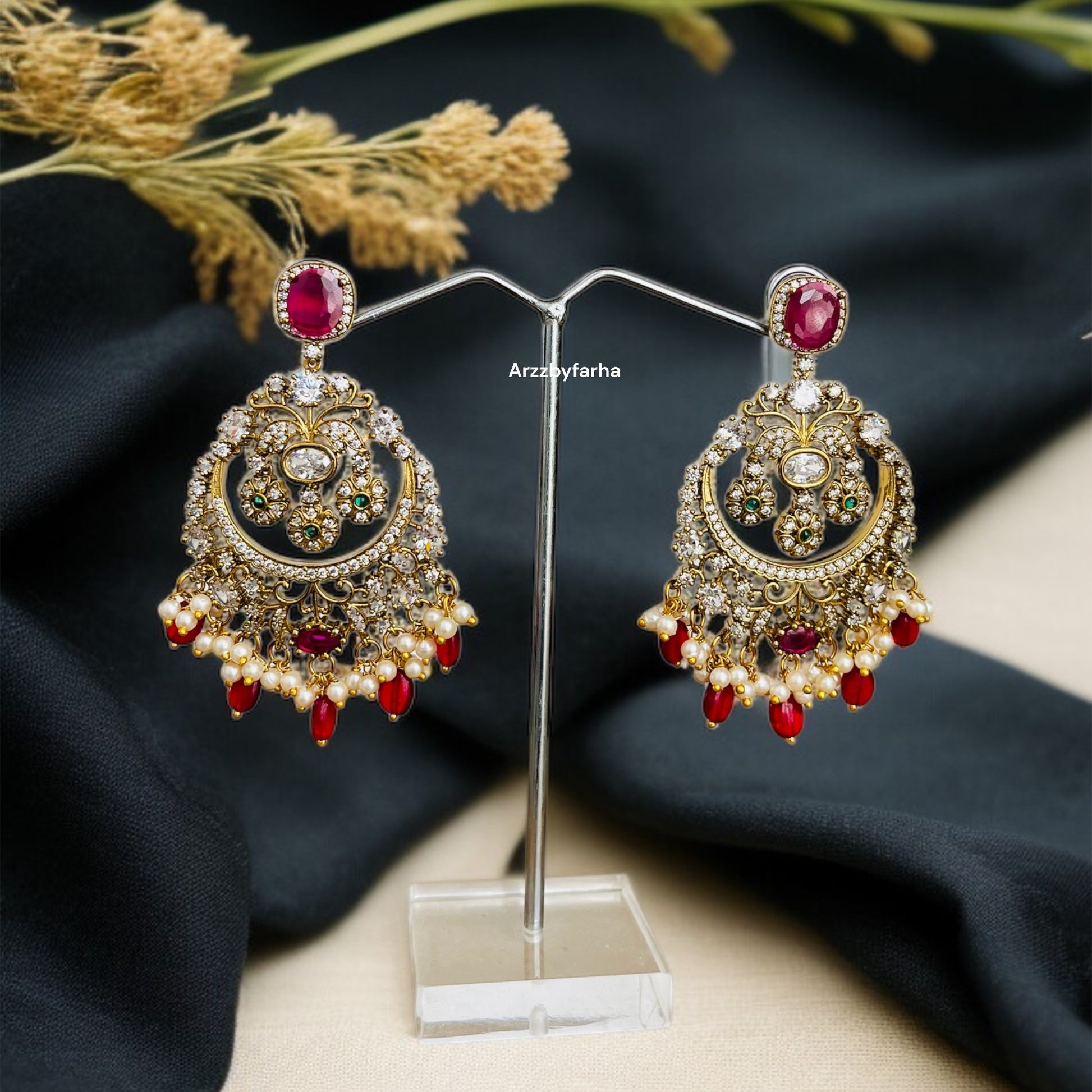 Expertly crafted with Moissanite Polki stones, these Victorian earrings add a touch of sophistication to any outfit. With their brilliant sparkle and unique cut, they offer a modern twist on a classic style. Elevate your look with these elegant earrings that are sure to make a statement.