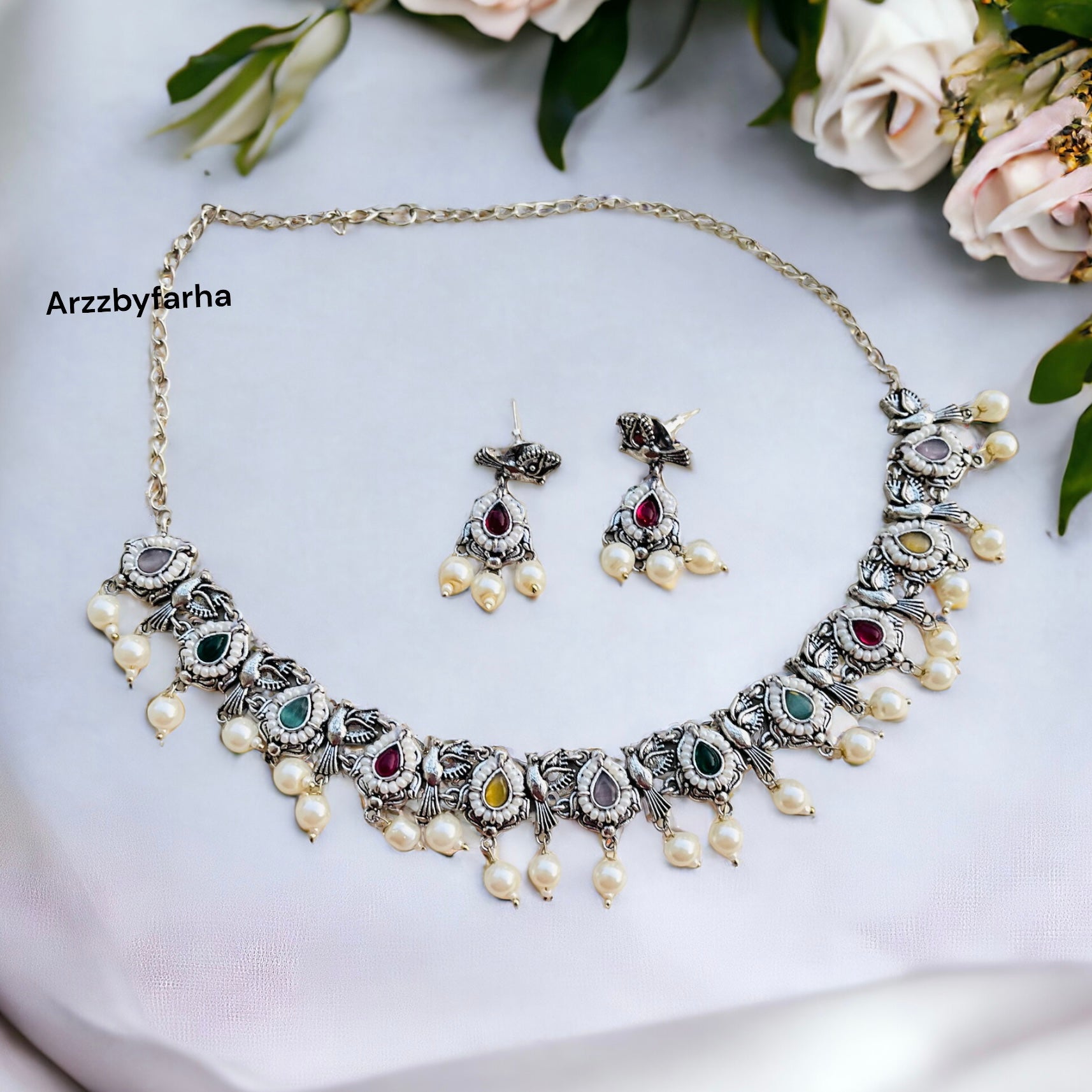 Multicolor Navratan Necklace Set