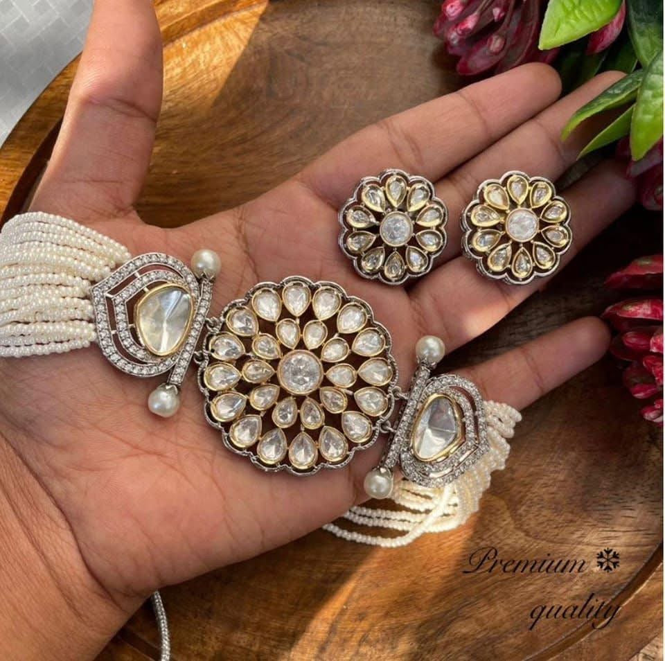 Expertly crafted with sparkling moissanite stones, this choker necklace set is the perfect addition to any outfit. The shimmering stones offer a glamorous touch while the delicate chain adds a touch of elegance. Elevate your style with this timeless piece.