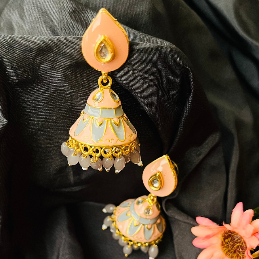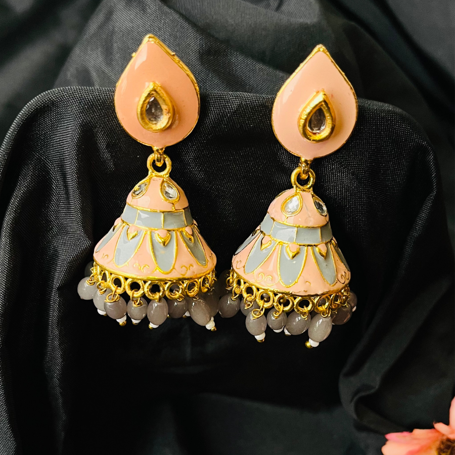 Pink & Grey Gold Plated Small Jhumki Earrings