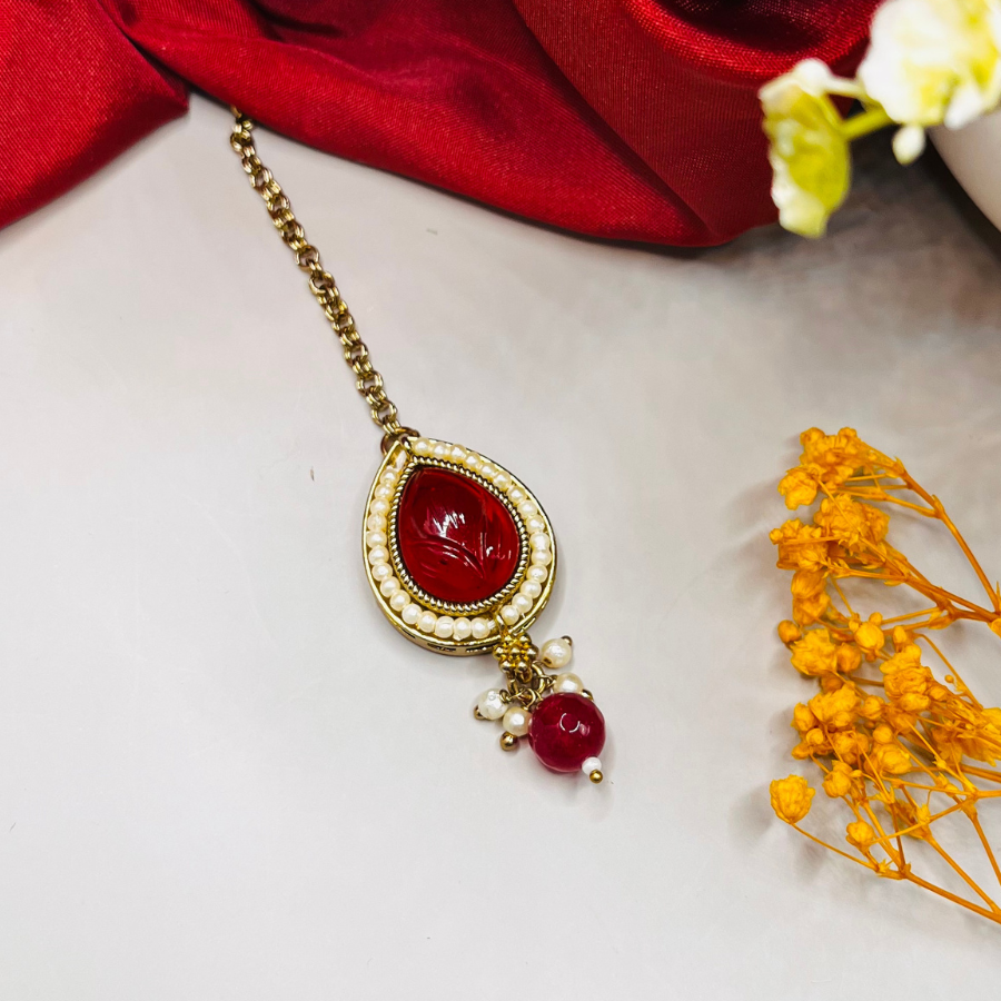 This Polki Maang Tikka is a traditional and ornate piece of jewelry that adds a touch of elegance to any outfit. Made with high-quality Polki stones, it features intricate designs and a comfortable-to-wear design. Complete your ethnic look with women's designer maang tikka