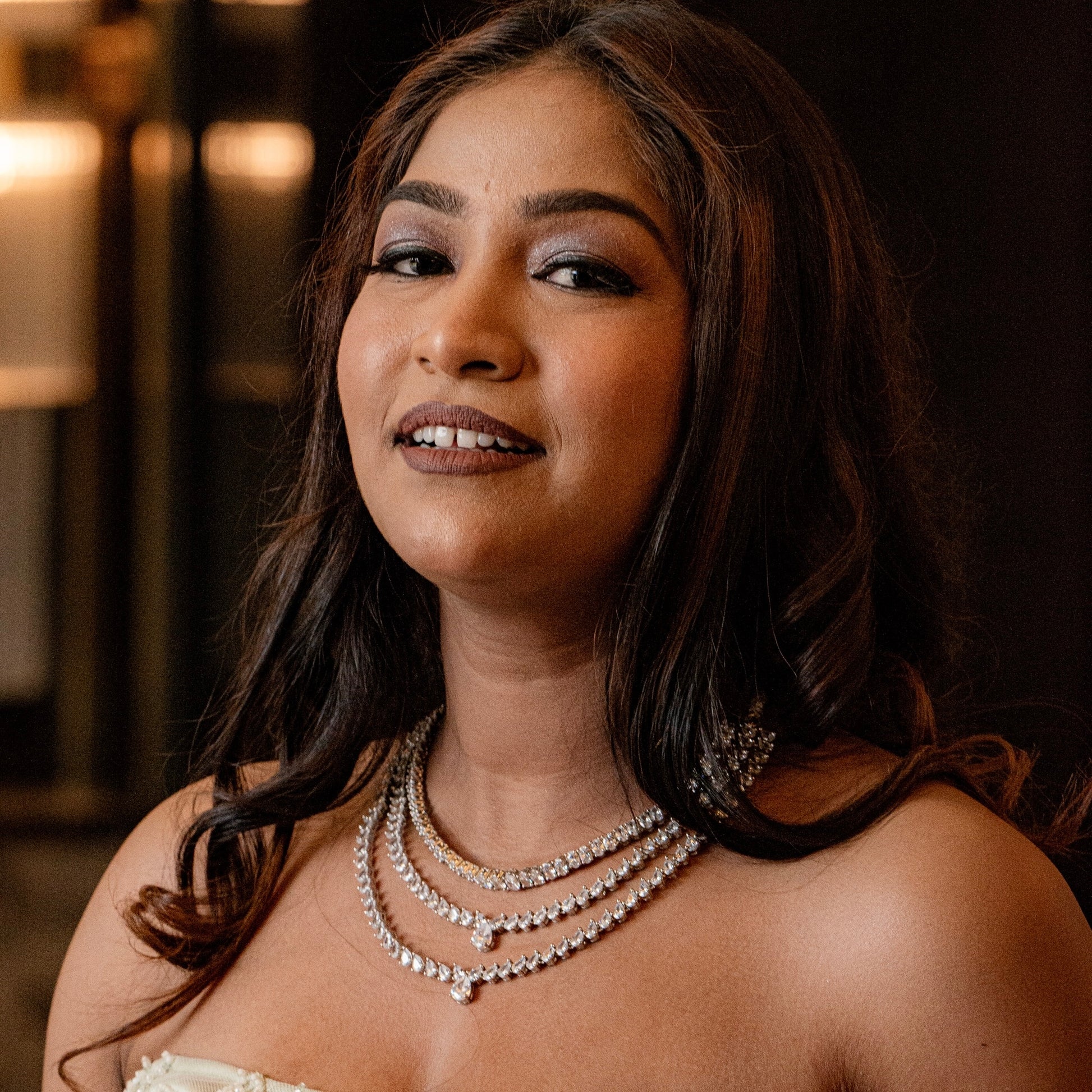 This Radhika Merchant inspired necklace set features a layered design that adds depth and dimension to any outfit. Crafted with high-quality materials, this set makes a statement and enhances any look. Make a sophisticated and stylish impression with this elegant necklace set.