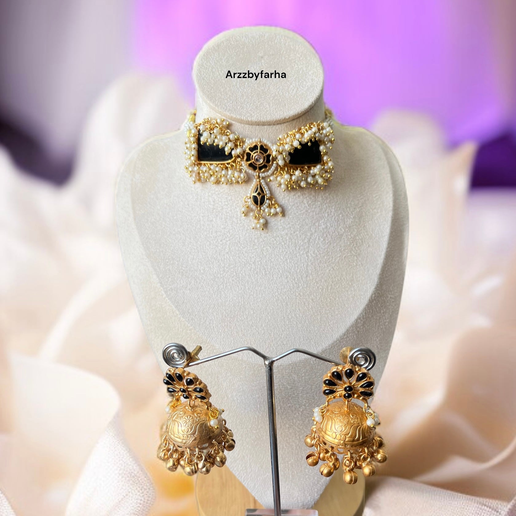 This set offers a striking balance of tradition and contemporary style. Perfect for special occasions, it adds a rich, sophisticated touch that complements your natural grace effortlessly.
