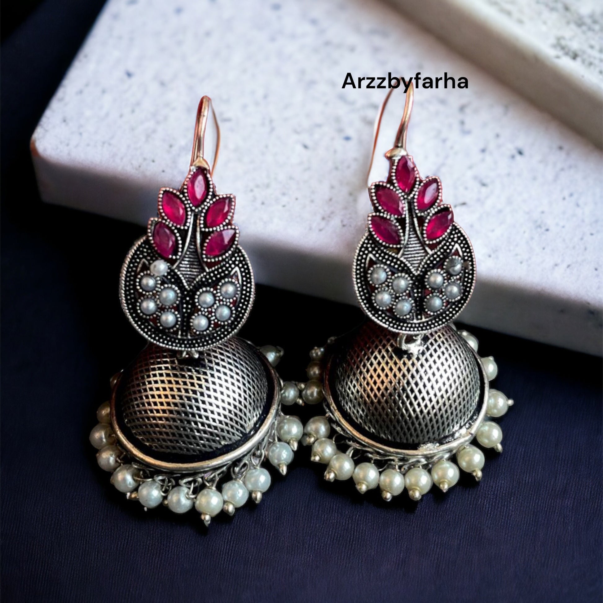 These Black Oxidised Silver Jhumka earrings are handcrafted with precision and feature a unique oxidized finish. The dark hue adds an elegant touch to any outfit, making them a versatile accessory for any occasion. Expertly crafted with high-quality materials, these Jhumkas are a timeless addition to your jewelry collection.