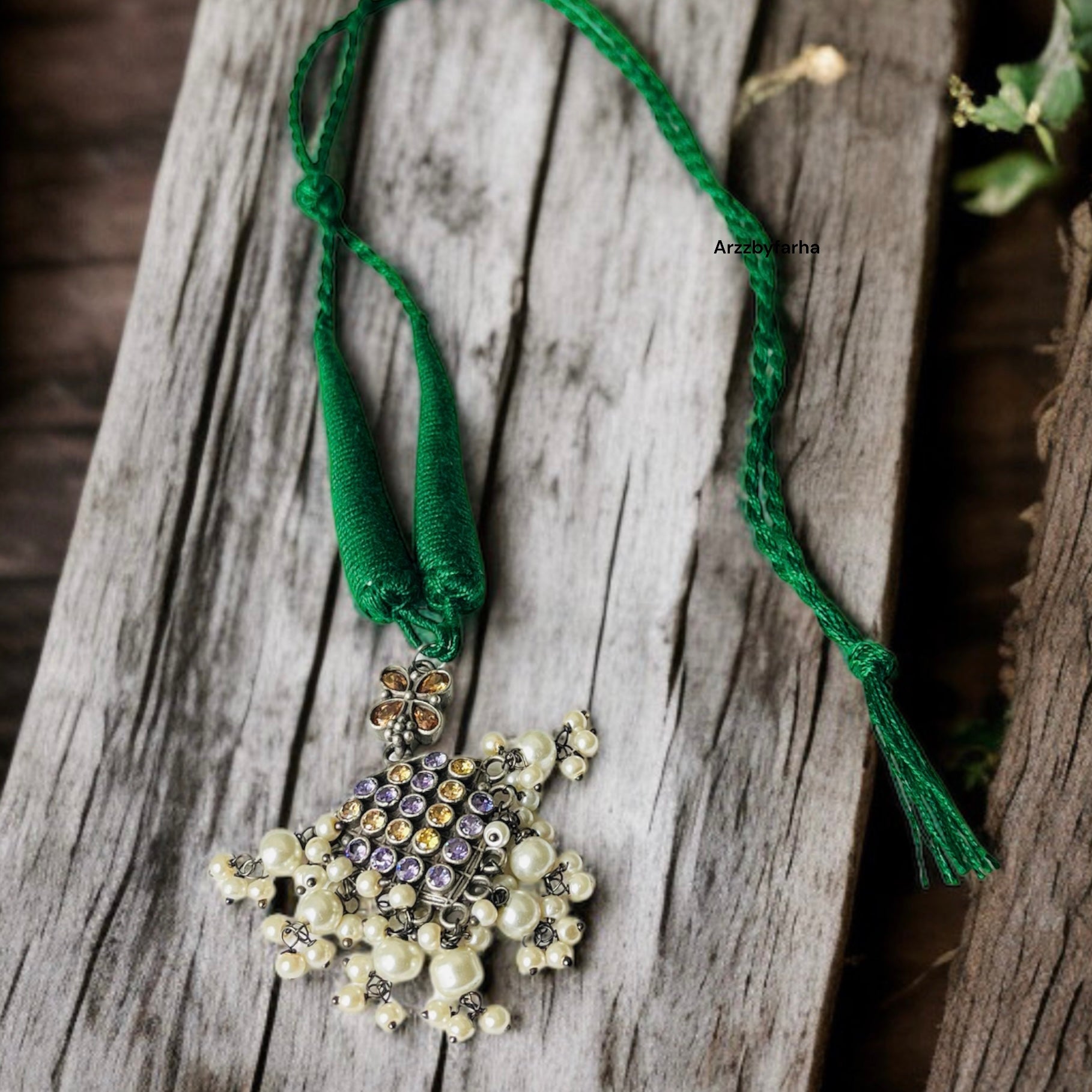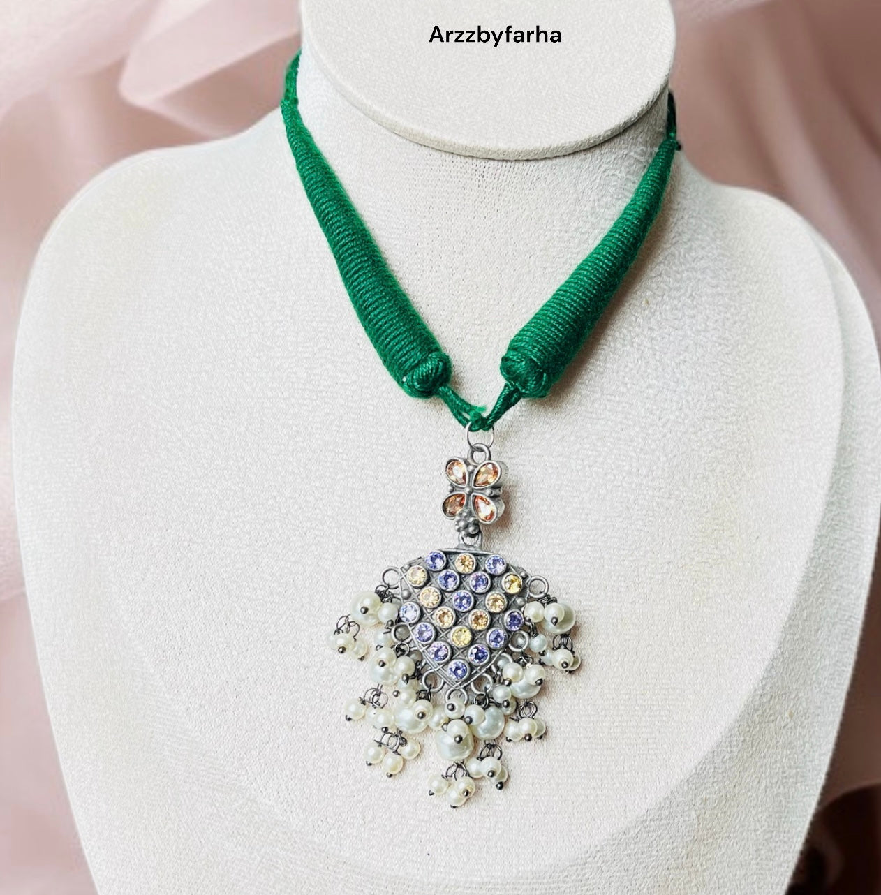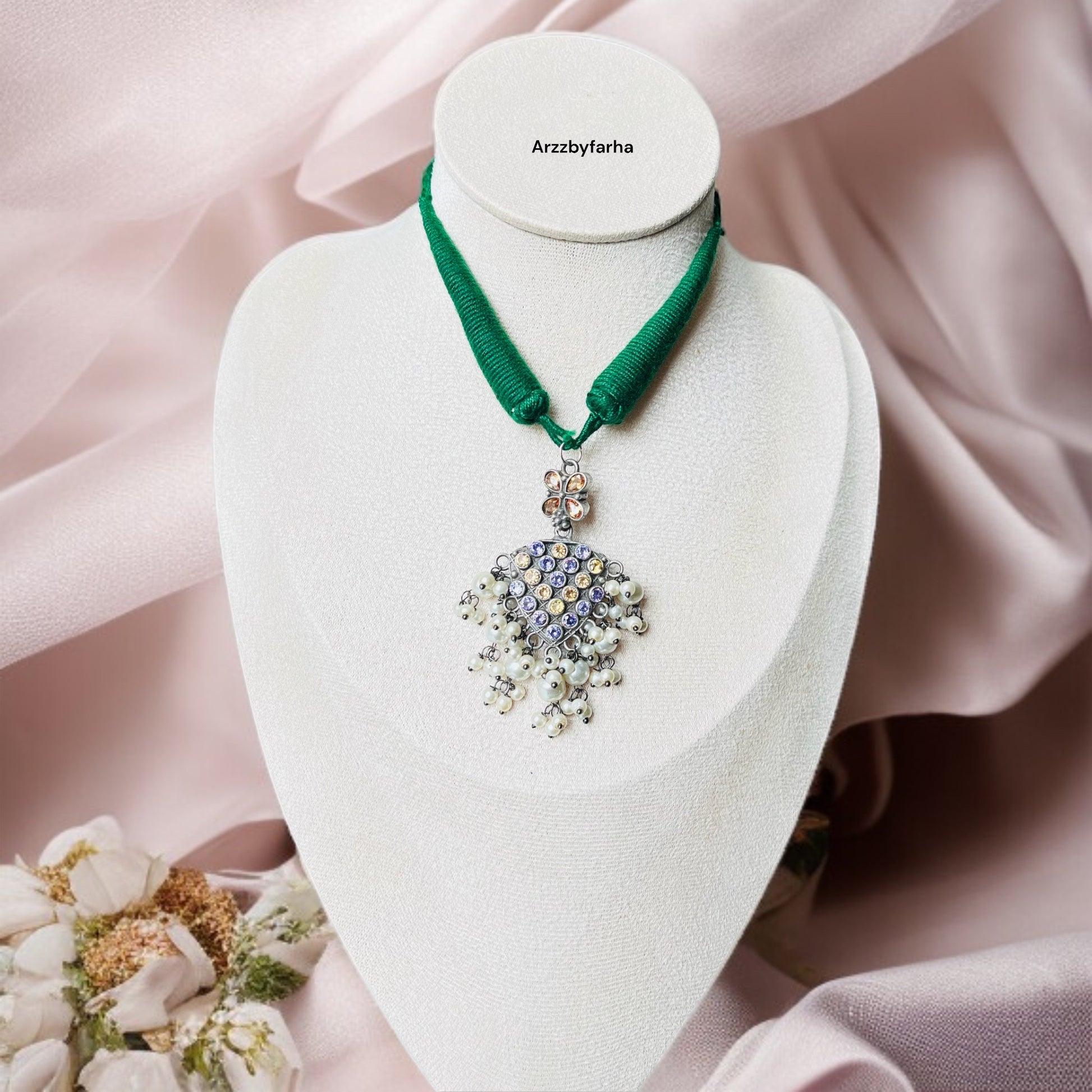 Color : Multicolor (Purple & Gold Stone Pendant) with Green Thread