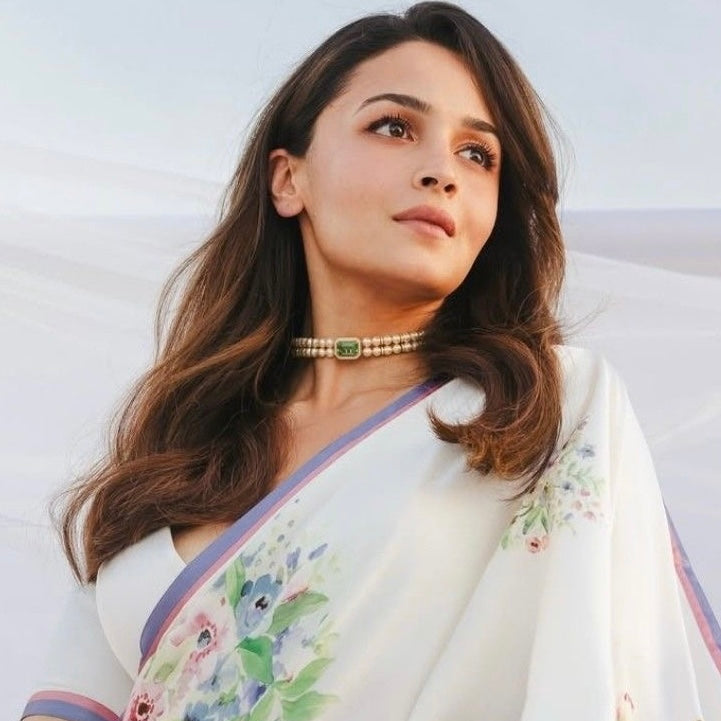 Experience elegance and sophistication with our Alia Inspired White Pearl Emerald Necklace Set. Made with lustrous white pearls and stunning emerald accents, this set is perfect for any formal occasion. Elevate your style and make a statement with this exquisite piece.