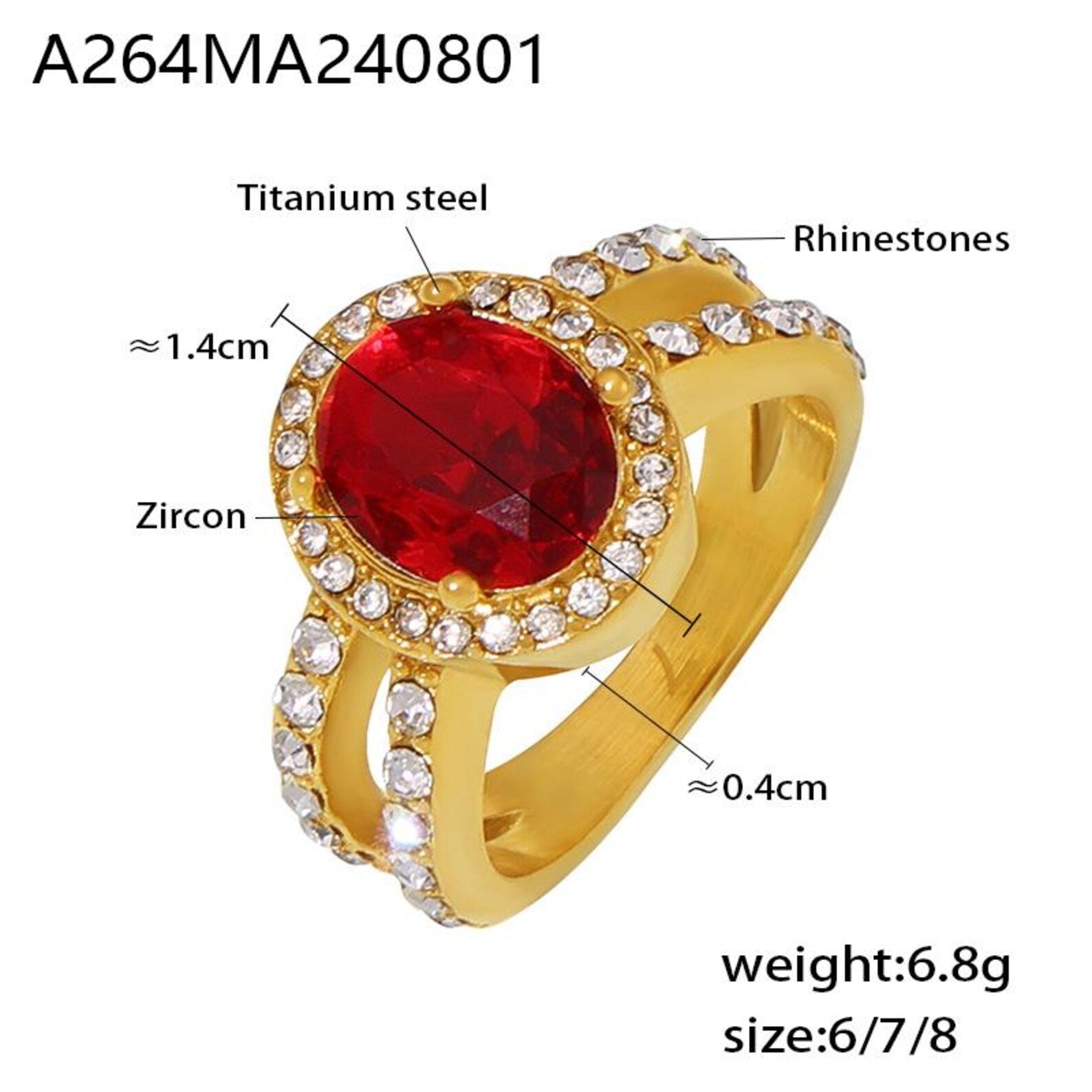 Red Rhinestones Statement Ring