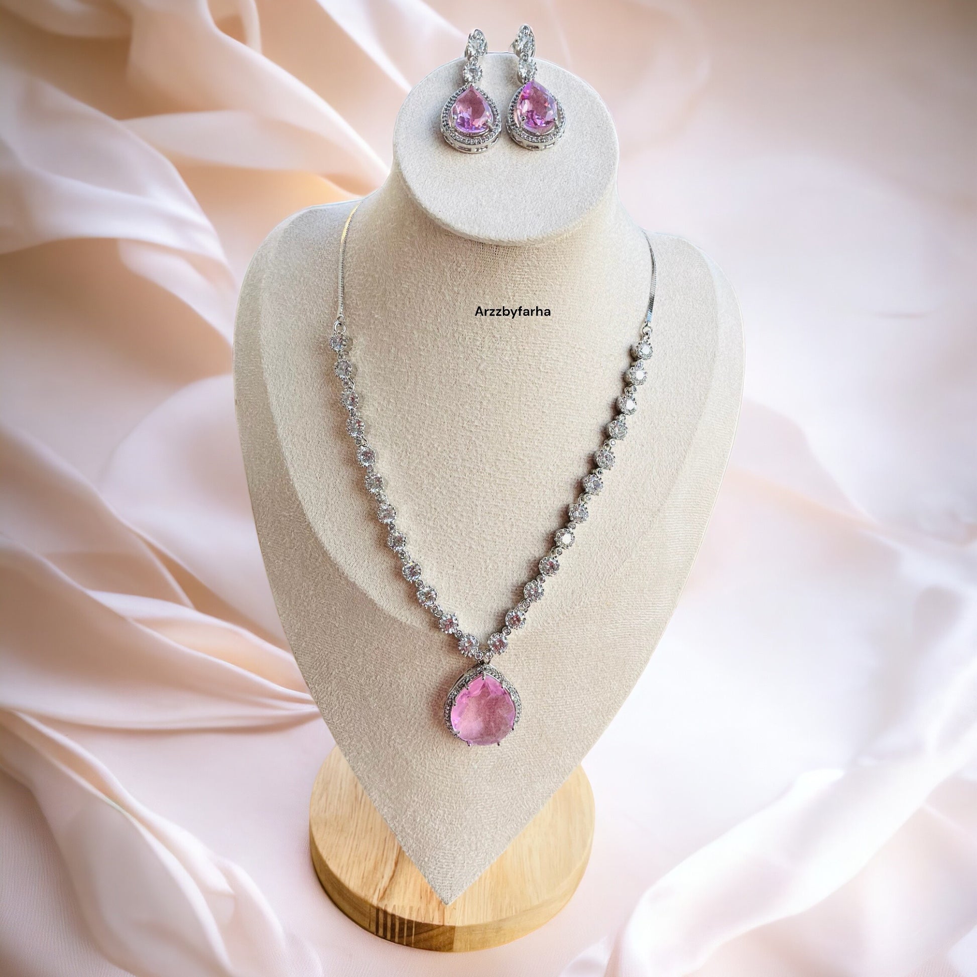 This elegant and timeless Mint Stone AD Zircon Necklace Set is expertly designed and crafted. The sparkling mint stone and dazzling zircon add a touch of sophistication and glamour to any outfit. With its unique combination of gemstones and impeccable craftsmanship, this necklace set is the perfect addition to your jewelry collection.