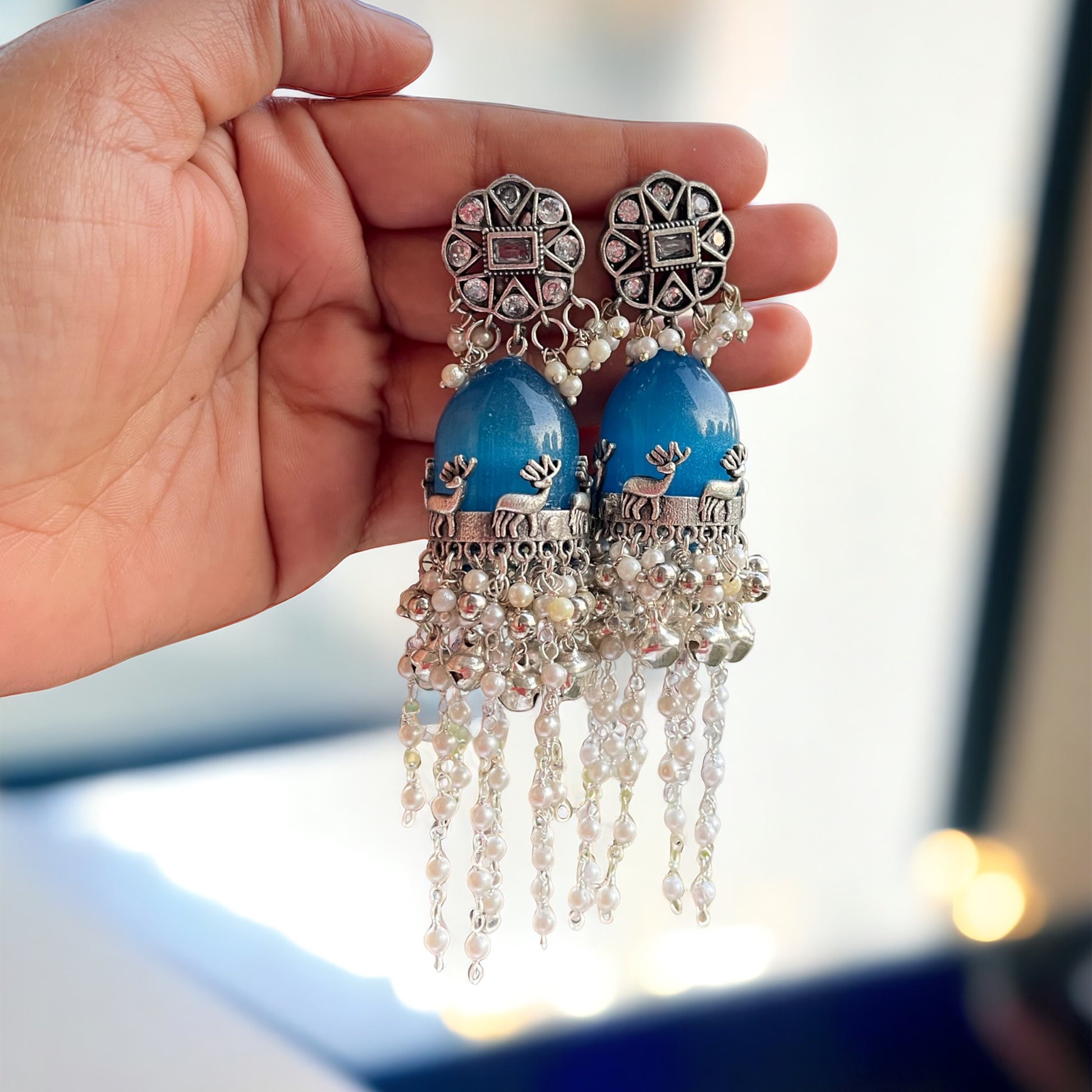 Discover the perfect blend of elegance and culture with our Pink Fusion Jhumka Earrings. Crafted with pink silver and deer fusion, these earrings showcase the beauty of both traditional and modern styles. Elevate your style and stand out with these unique and timeless pieces.